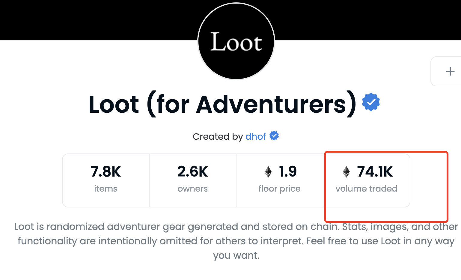 Loot 在 OpenSea 上的交易额有 74K ETH