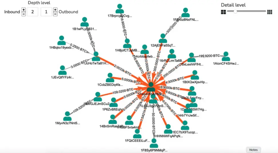 追溯到到黑客地址的交易分布。来源:Bitcoin.com