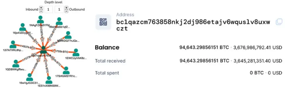 该钱包中的资金是一对黑客夫妇在 2016 年从 Bitfinex 窃取的。美国当局已经追回了其中的一部分资金(120000 BTC )。