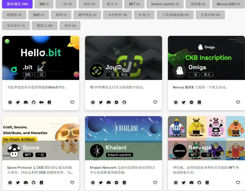 Nervos Network生态初具雏形,包括钱包、跨链桥、DID、DEFI等项目。不过,知名的项目不多,尚未出现现象级的产品。
