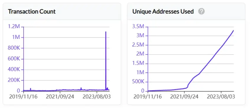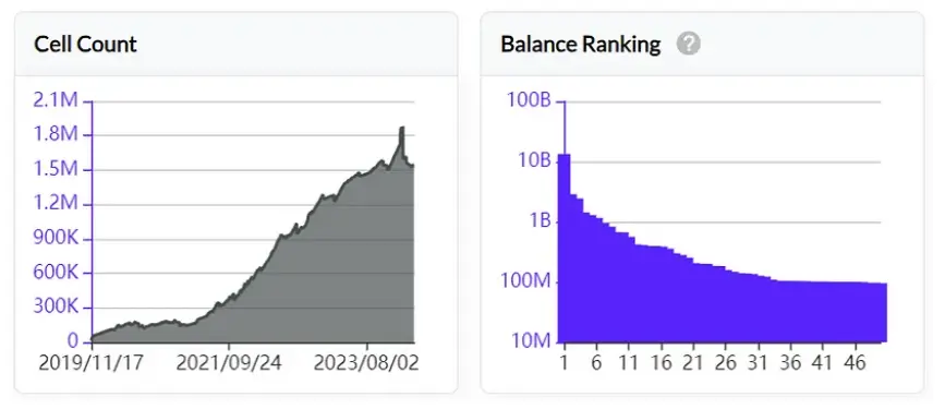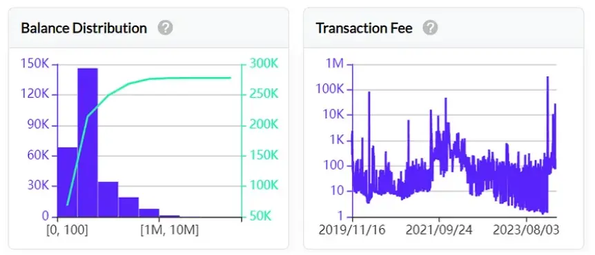 从链上数据来看,协议的交易次数有所增长,2024年初曾出现天量的交互。独立地址数、Cell数量也在持续增长,链上的交易费收入在2023年底得到增长。总体看,链上数据有明显增长,活跃度增加。