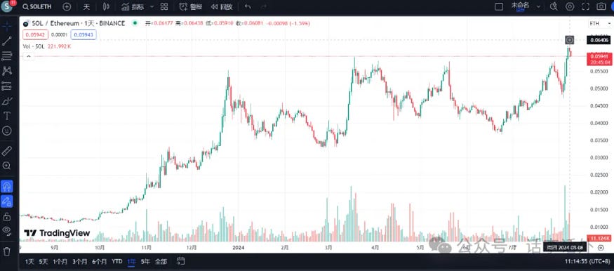 前两天我看到群里的部分伙伴在讨论 ETH 的问题,从价格上看,本轮牛市 SOL 的表现明显优于 ETH,难道 ETH 真的就不行了吗?