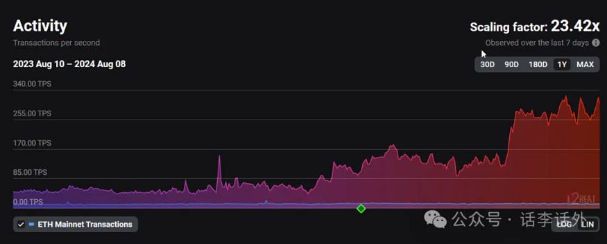 而这个过程中,同时也给了其他网络一些新的短期炒作机会,比如号称速度更快、费用更便宜的 Solana 网络凭借 MemeCoin 的炒作热潮使 SOL 代币变成了一种新的需求。ETH 在 L2 和 SOL 等的分流下,一定程度上就造成了流动性割裂。