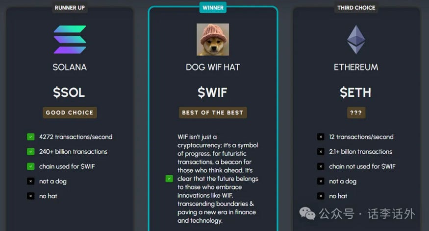 这里我们可以简单举个例子,比如近期比较火的 PolitiFi 概念 MemeCoin 其实就是充满时限性的,像 TRUMP、KAMA 此类的代币,热度估计也只会持续到今年美国总统大选结束的时候。但诸如 WIF 这样的代币,它自己所倡导的是进步、创新、超越界限等价值观,这个虽然听起来很鸡汤也很空泛,但确实是属于不会落伍的长期价值观,这种不会因为热点事件的结束而在一天内消失。