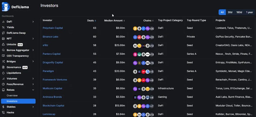 如果你不知道目前加密领域中的一些 CV 情况,那么可以借助 DeFiLlama 工具进行辅助了解。如下图所示。