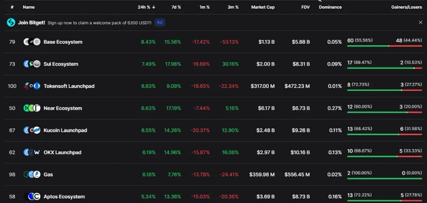 就以 Dropstab 平台的数据分类来看吧,目前加密领域至少可以划分为上百个叙事。如下图所示。