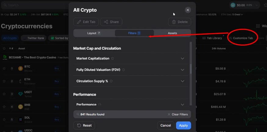 这里我们可以继续借助 Dropstab 工具,你可以利用该工具的过滤器进行不同维度的过滤,然后筛选出你希望进一步了解或研究的项目清单。如下图所示。