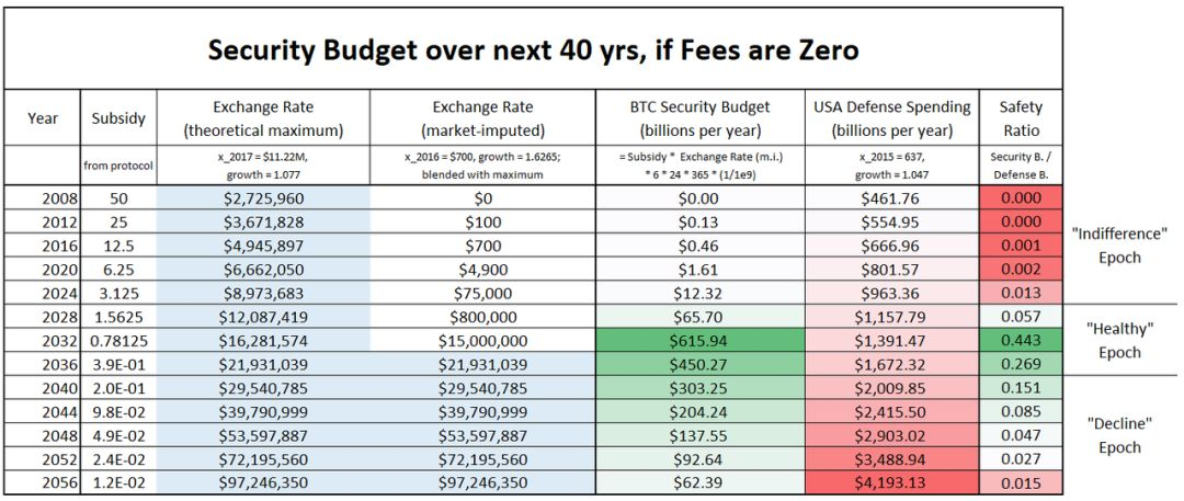 - 4/36) 这一切都意味着,如果未来没有极高的交易费用,BTC 的长期安全性是不可持续的!,BTC的安全性将不可避免地持续下降,直到攻击变得有利可图,我预测这将在5-9年后发生!(2-3减半)