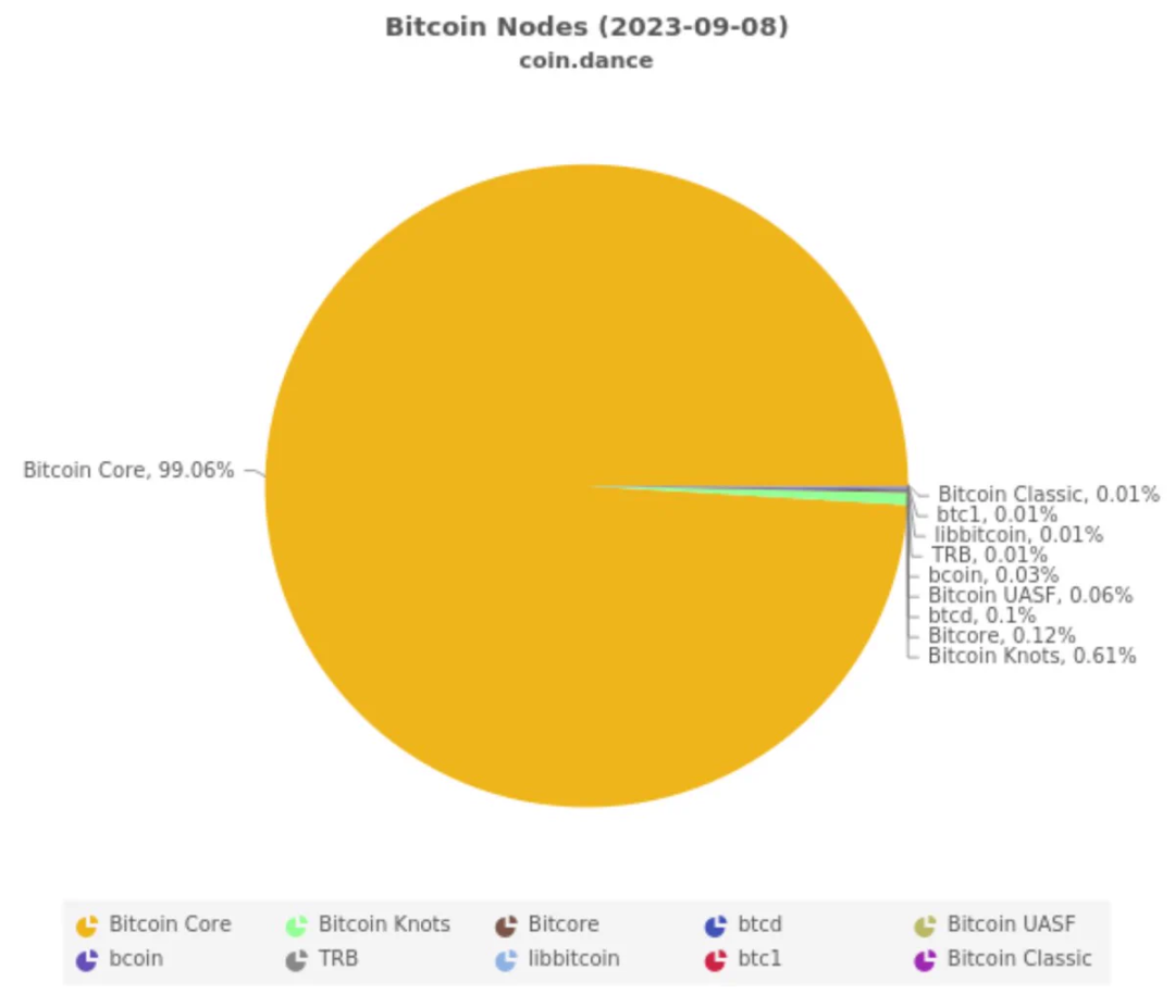 - 20/36) 目前超过99%的全节点正在使用Bitcoin Core,极度集中化!实际上只有一位主要维护者对所有决定拥有最终决定权,这使其成为独裁统治,像所有独裁政权一样,他们的权力也是有限度的。