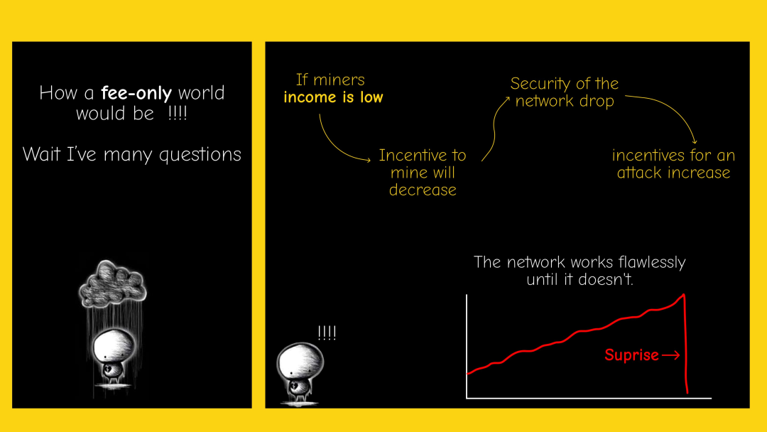 - 11/36) 那么这一切意味着什么呢?这意味着BTC的长期安全陷入深渊如果没有极高的交易费用,BTC的安全性将不可避免地不断下降,直到它跌得如此之低,以至于网络变得可以通过攻击获利,从而使 BTC 变得不安全!