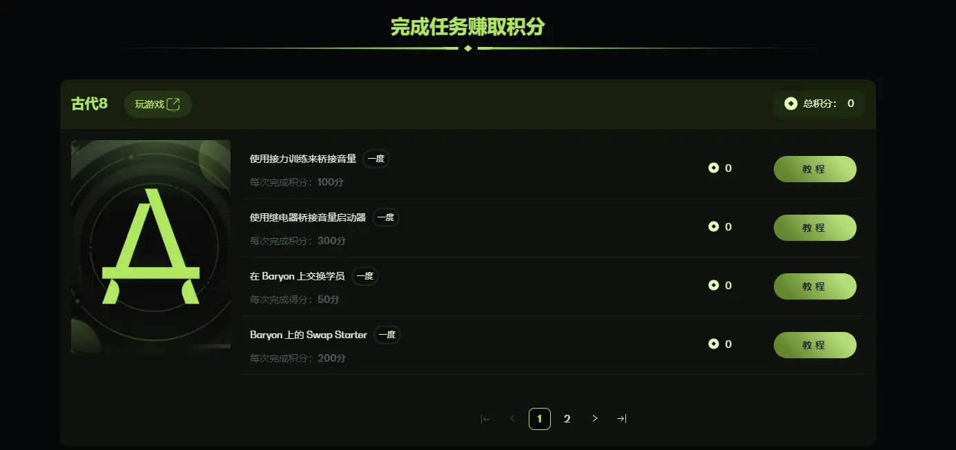 登陆Ancient8 链上的游戏,查看游戏内的任务列表。