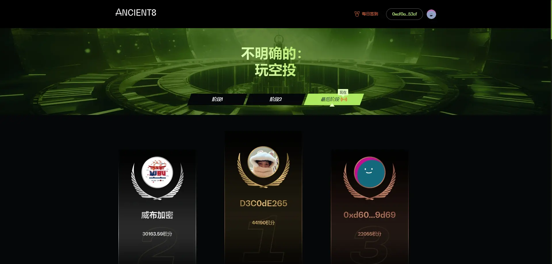 Ancient8 目前正在举办“Play-to-Airdrop”活动。此活动分为多个阶段,玩家通过完成链上开发的游戏任务,能够获得空投资格。