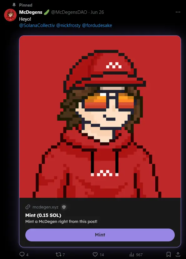 想像一下你在微信就可以通过二维码和链接邀请你的朋友一起打土狗,又或是付款给你的家人们去买个奶茶,所有微信 mini app 能做到的事情,发生在 Web3 会怎么样? 那就是 Solana Blinks 所带来的革命。