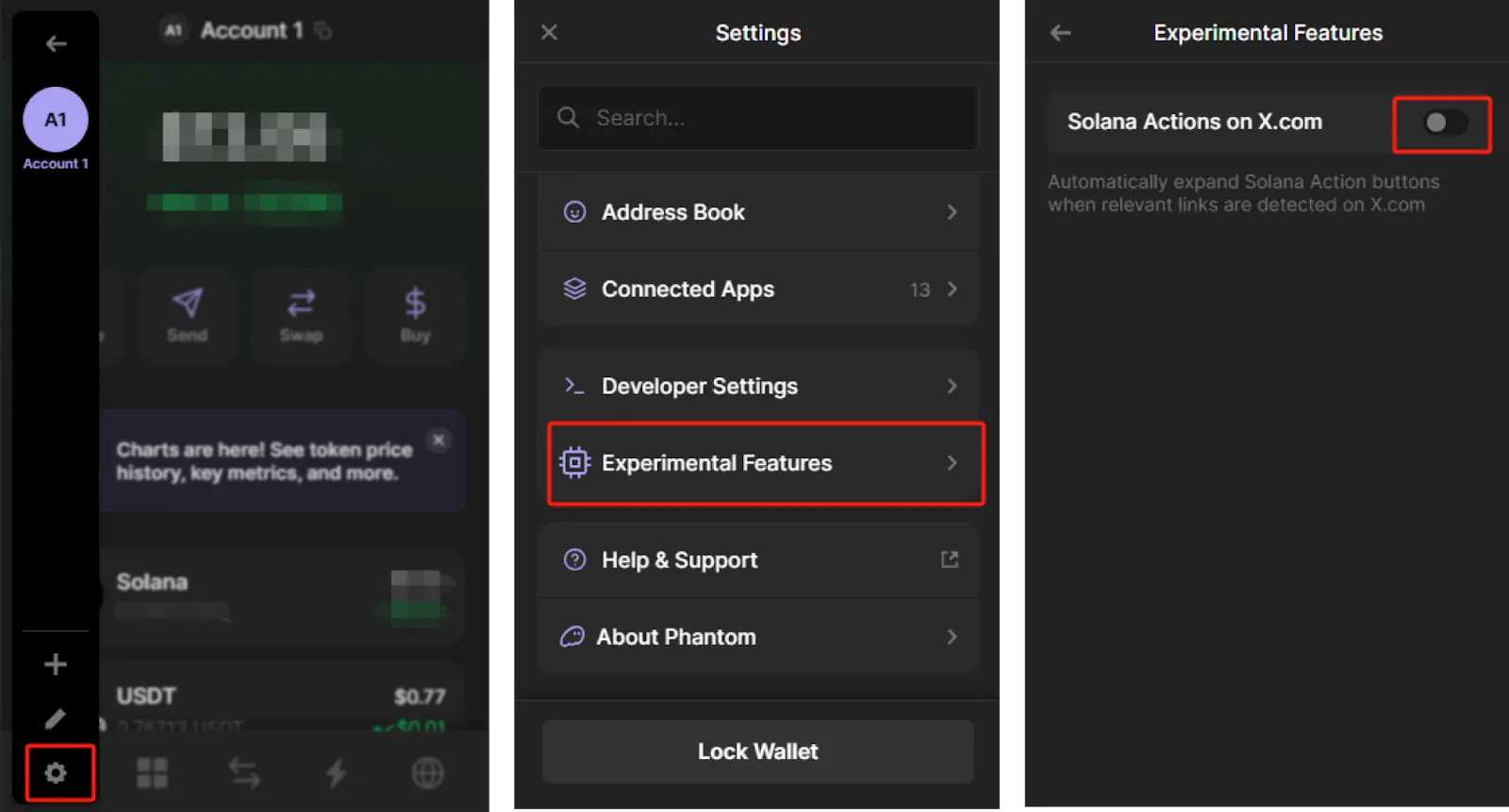 设置 - 实验性功能 - Solana Actions on X.com 开启