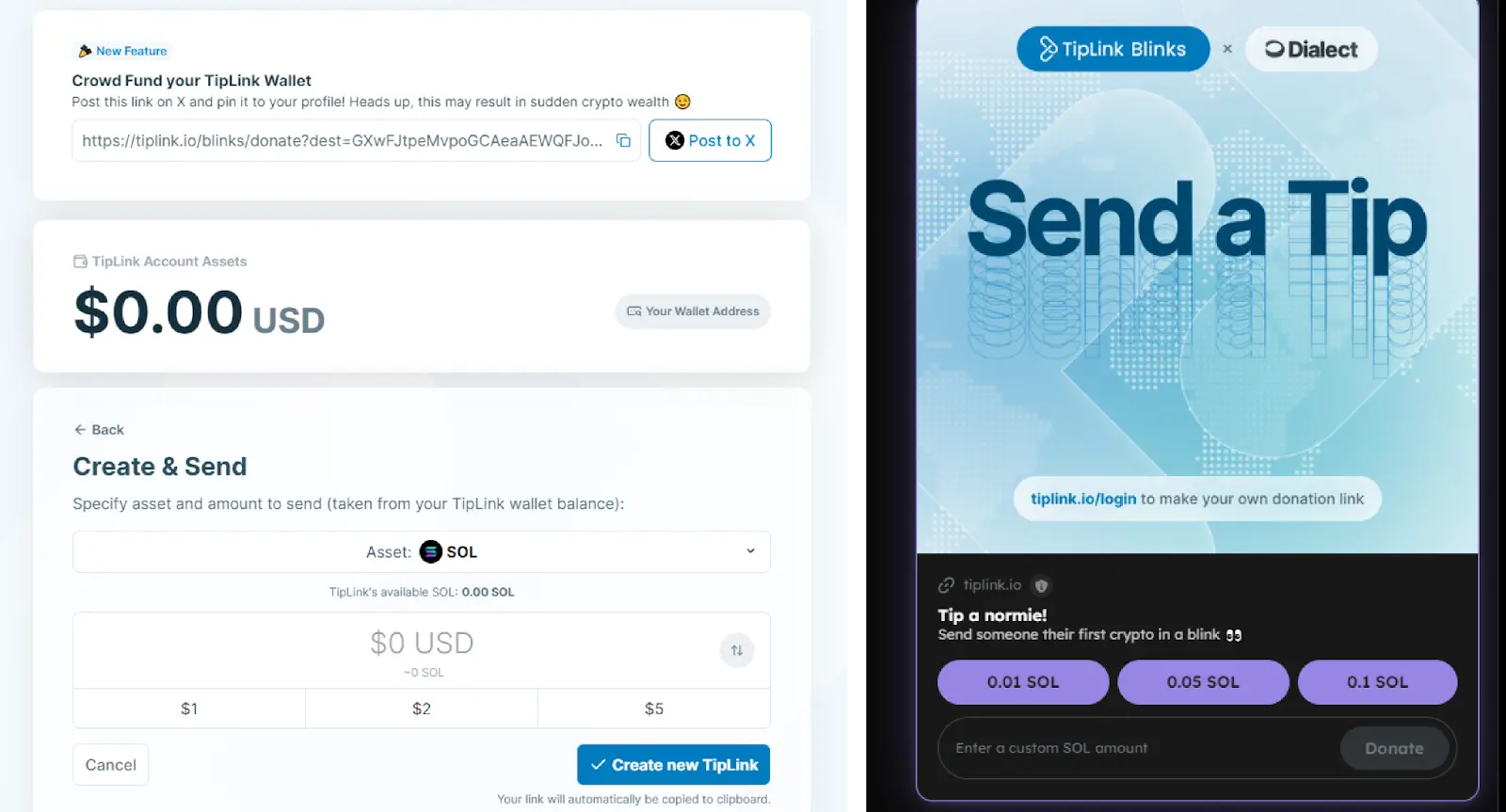 甚至可以直接通过TipLink一键创建捐赠链接