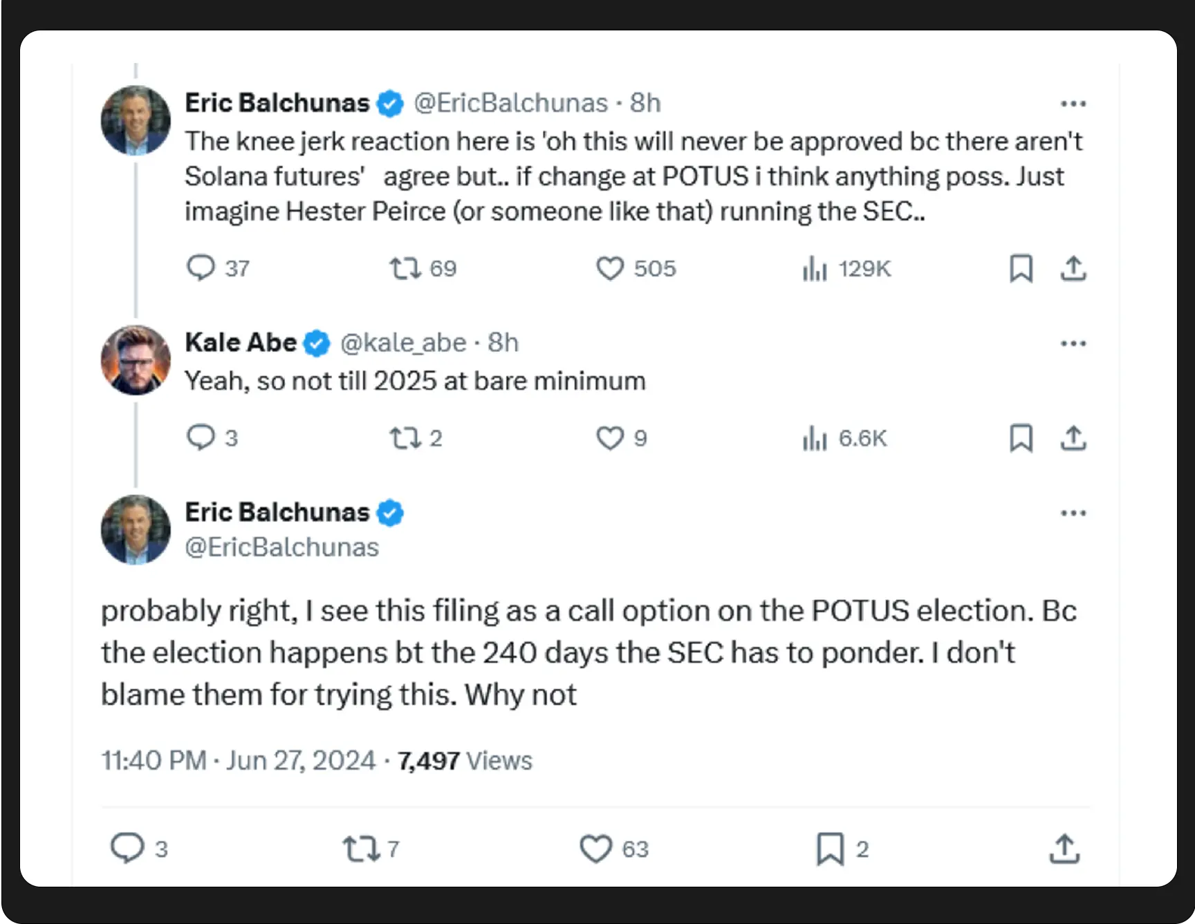 另外, 6 月 27 日,VanEck 数字资产研究主管 Matthew Sigel 表示已向 SEC 申请 Solana ETF,并表示可能会在 2025 年推出。