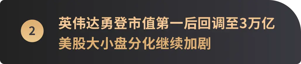 尽管美国 6 月 CPI 数据显示通胀超预期降温,但非农数据的强劲表现让市场对美联储的降息预期变得复杂。此外,CPI 与非农数据的背离以及欧洲已经开始的降息举措,进一步加剧了全球货币政策的分化。在股票市场,英伟达市值的剧烈波动和美股大小盘,反映市场对 AI 技术前景出现分化,同时也暴露了市场集中度的增加。
