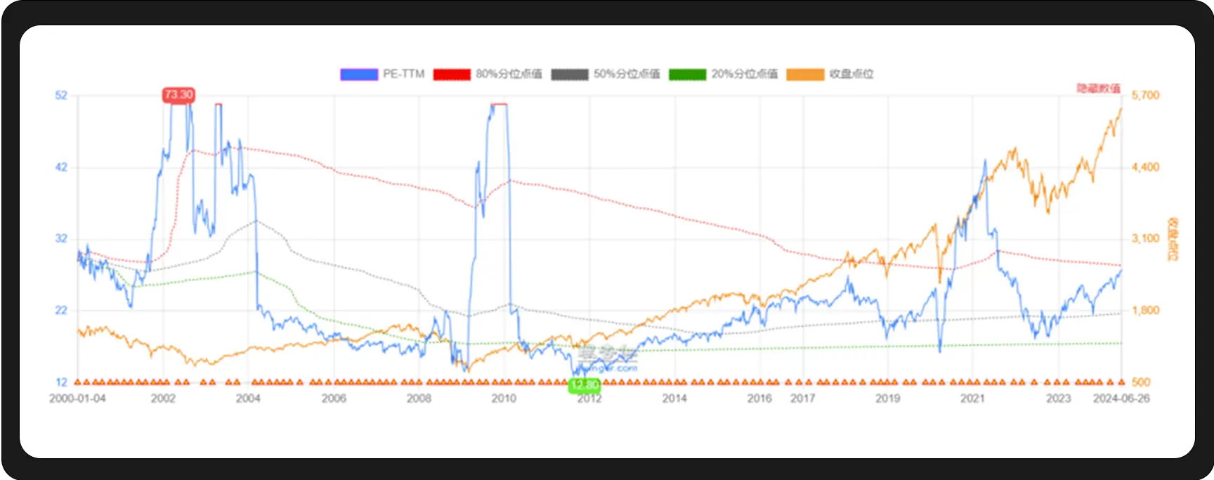从年初以来,“美股泡沫”的言论一直都在甚至越来越响亮,但美股却一直屡创新高。如果 WealthBee 从市盈率指标分析的话,尽管近一年以来标普 500 的市盈率一直在走高,且接近 21 世纪以来市盈率 80% 的分位,但相比于 2002 年左右互联网泡沫破裂时的市盈率还是低得多。因此可以说泡沫确实存在,但并没有那么严重。