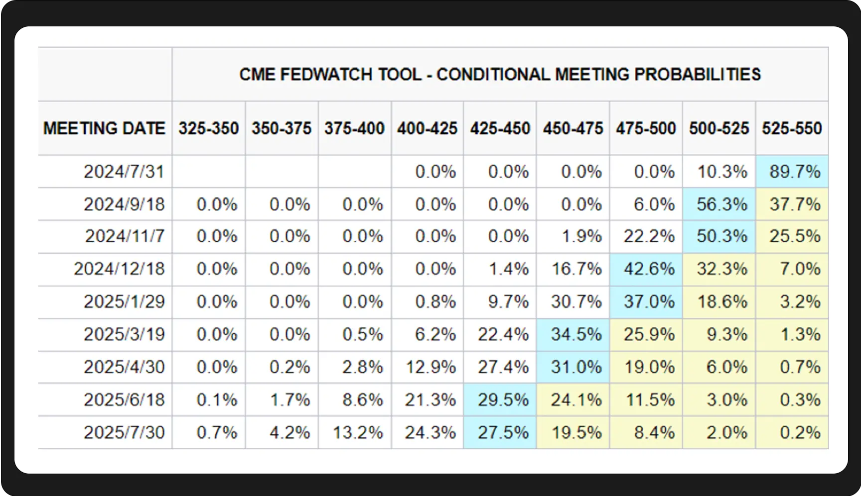 然而,本月标普 500 指数回报率和广度指标之差达到 30 年极值,也就是说,尽管指数在屡创新高,但是上涨股票的数量却不断减少。这表明市场资金全部集中在大的权重股上,小票几乎“无人问津”。这种现象并不利于美股整体的流动性,机构抱团可能会使得抱团股票的下跌导致整个市场的暴跌。因此,美股目前风险存在且明显。WealthBee 认为,或许需要等到英伟达 2025 财年的二季度财报的出现,看英伟达是否能继续超出市场预期,叠加降息预期的变化,届时美股风格可能会迎来一些改变。