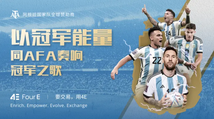 在这场足球盛宴中,4E作为阿根廷国家队的全球合作伙伴,也在球赛中全场露出,陪伴着阿根廷队冲锋陷阵,与球迷一同为阿根廷队加油,见证每一次进攻,共享每一份胜利的喜悦,并通过庆祝活动和社交媒体与全球球迷分享这份荣耀。