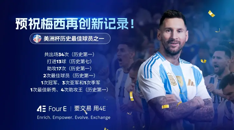随着四年一度的美洲杯赛事拉开帷幕,全球球迷的目光再次聚焦在这片充满激情与荣耀的绿茵场上。作为阿根廷国家队的全球合作伙伴,4E 平台推出的“预祝阿根廷夺冠,瓜分 200 万美金奖励”活动,不仅点燃了球迷的热情,更是为这场足球盛宴增添了一抹别样的色彩,也为球迷们带来了一场别开生面的交易盛宴。