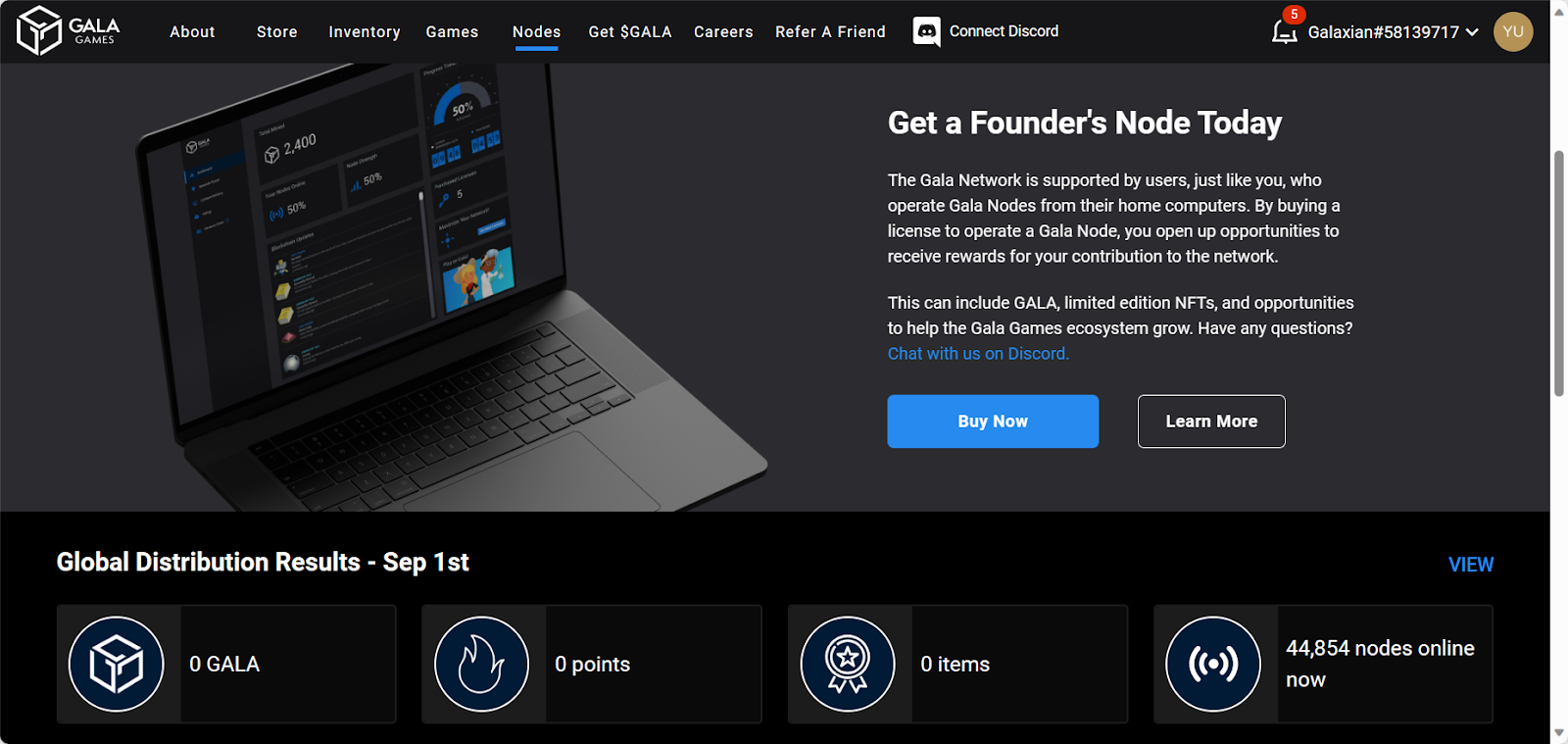 关于节点:目前在官网的创始人节点价格为 5M Gala 左右,以当前的市场价格计算相当于约 100,000 美金,用户在购买节点许可证后,可以在个人电脑或虚拟专用服务器上运行创始人节点,而无需支付任何代币作为质押。创始人节点发行的最大数量为 50,000 个,一旦购买便是永久的且无法在二级市场进行转卖,目前的活跃节点已经达到了 44,000 左右。用 Gala 购买创始人节点也类似于挖矿,该节点是一种 POS 节点,每日产出的 Gala 一半会分发给创始人节点,保持每天至少6小时的节点运行后就可以获得当天的奖励积分,根据 Gala 官方的积分系统来决定你可以获得的奖励。运行时间越长,获得的奖励就越多。除了每日产出的 Gala,创始人节点还会收到 Gala 旗下的游戏代币(如 Town Star的 $Town)和随机分配的游戏 NFT 作为奖励。每年7月21日,每日的 Gala 产出将减少一半。