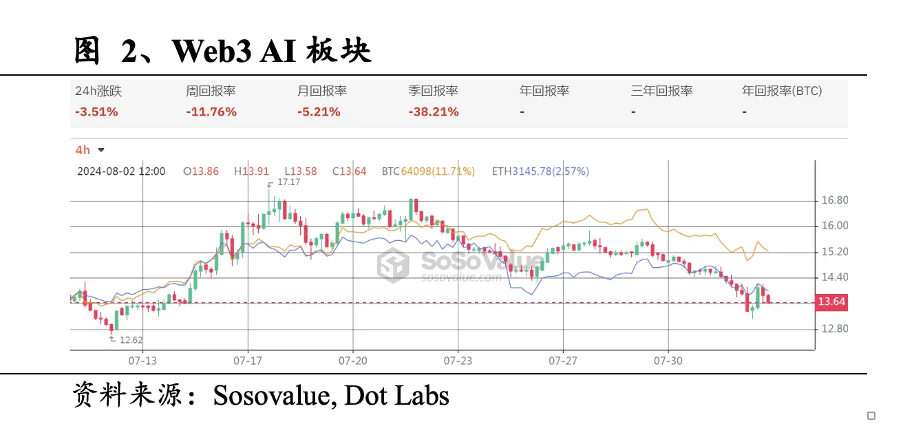 过去24小时,AI美股板块跌幅为3.53%,Web3 AI板块跌幅为3.51%,比特币同期跌幅为0.33%。