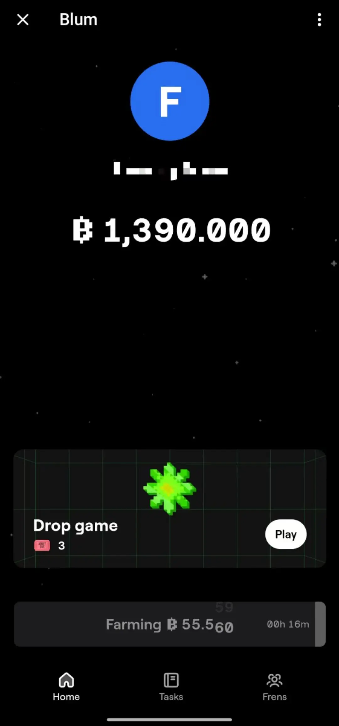 2、Blum 推出了 Drop game,一个通过点击屏幕接住掉落的金币的游戏模式来获取积分。