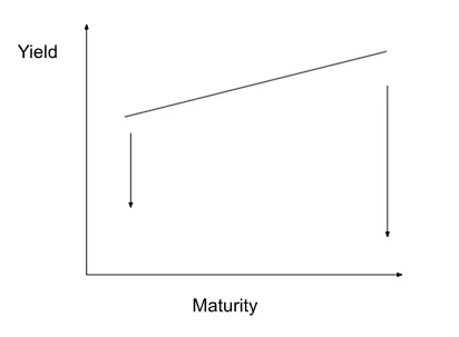 图 1:这是熊市陡峭化的曲线。曲线开始倒挂,整个曲线的收益率上升,长期利率上升速度快于短期利率。