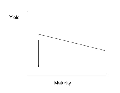 图表 5:经济衰退来临,或者一些 TradFi 公司破产,美联储降息,导致短期利率下降,长期利率保持不变。这会使曲线变陡。
