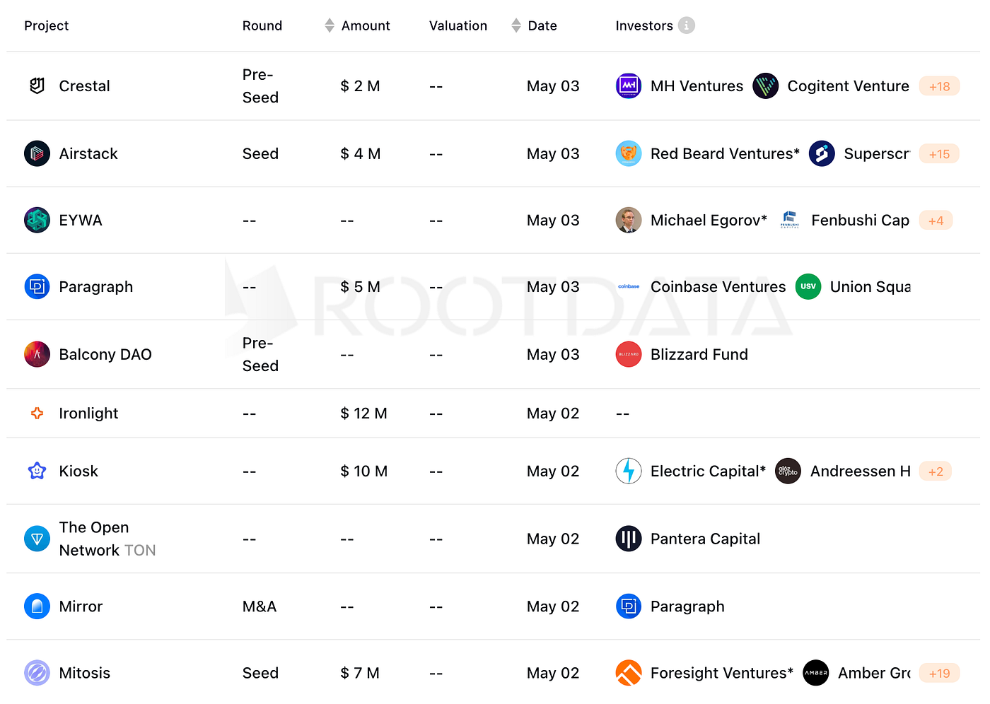 其他Web3/加密应用公布7起融资,其中Web3 内容发布平台 Paragraph 完成 500 万美元融资,USV、Coinbase Ventures 参投;