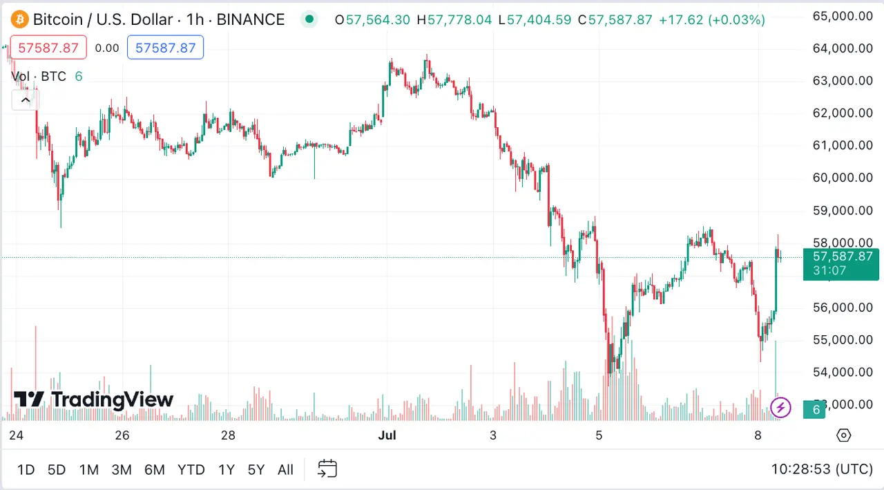 纵观眼下的局面,社区里明显地分化出两种不同的声音。消极的交易者指出,来自德国政府和美国政府还有门头沟三大势力的抛压仍未消退,币价还可能继续走跌。但今天社区中有更多乐观的交易者发声,他们首先否定了政府抛压的带来的过度影响,指出政府卖的 BTC 数量只有上一轮牛市的 4% ;另一方面,即使在 Spot 下行的行情,ETF 仍然在为市场带来正向的资金流入,大部分都去到了 FBTC;我们还能看到,有日本 MicroStrategy 之称的咨询公司 Metaplanet 在昨天抄底购买了 42, 466 枚 Bitcoin,价值$ 2.5 M,现在这个公司总记持有了 203, 734 枚比特币,均价在 62000 左右。