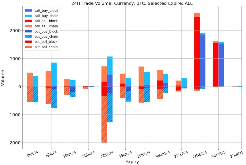 从交易上看,由于 11-12 号的重磅数据公布和 ETF 批准的可能性,交易员大量购买 ETH 12 JUL 的看跌期权,对多头持仓进行保护。BTC 则是相反,价格的反弹为交易员抛售 12 JUL 看跌期权提供了信心,同时远端看涨期权的成交量暴涨,分布上主要是 wing 上的买入,以及更远 tail 上的卖出,形成了 long call spread 的 flow。