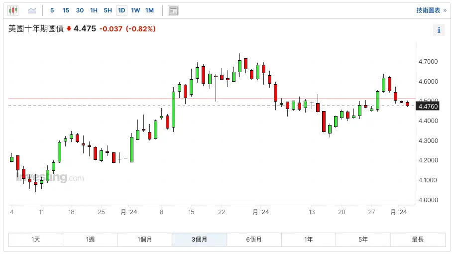上周五美联储重点关注的核心 PCE 物价指数月率录得 0.2% ,略低于预期 0.3% ,创下 2023 年 12 月以来新低。数据公布后美债收益率连续四天下降,回吐了上周半数涨幅,十年期跌至 4.5% 以下,现报 4.475% ,两年期报 4.871% 。风险市场得到提振,道指和标普分别上涨 1.51% /0.8% ,纳指接近平收。