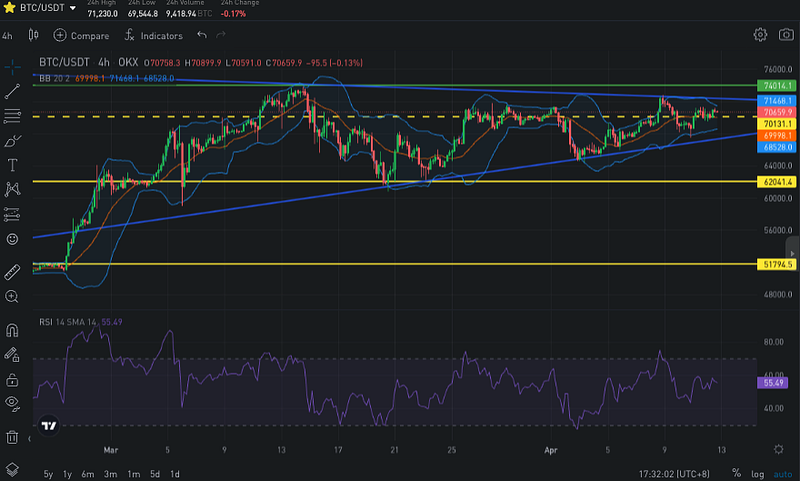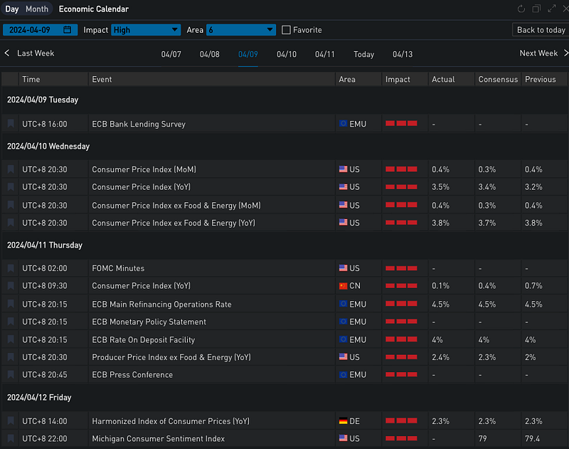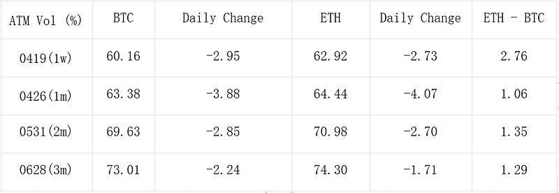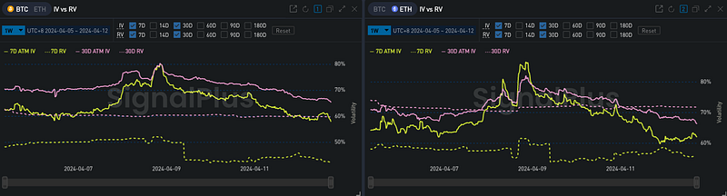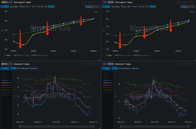 数字货币方面,在减半事件即将到来之际,BTC ETF 净流入放缓,实际波动也进一步缩减,远期 Future Yield 下行 0.4% -0.6% 左右。期权方面,隐含波动率再度下行 2–4% Vol,卖出短期 Option 持续受到交易员的青睐,主要集中在 BTC 19 APR 和 26 APR,ETH 买卖相对均衡,或是由于 IV 相对 RV 的敞口已在前几日的抛售行情下大大缩减。