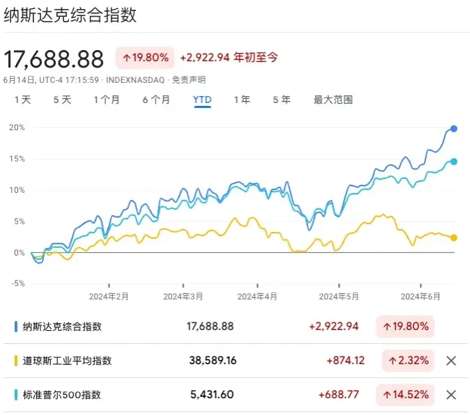 美股三大指数走势。来源:Google 财经