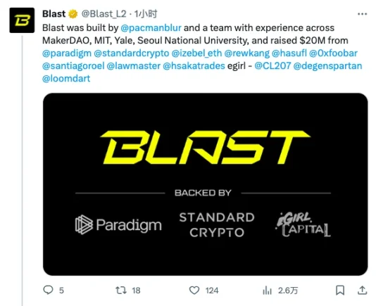 Blast 是一条采用了 Optimistic Rollup 机制的 Layer 2 网络。伴随着 Blast 的上线,Pacman 亦宣布该项目已获得了 2000 万美元融资, Paradigm 、 Standard Crypto 、 eGirl Capital 以及 Mechanism Capital 联创 Andrew Kang 、 Lido 战略顾问 Hasu 、The Block CEO Larry Cermak 等若干天使投资人参投。