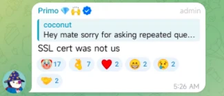 Bryan(Primo)补充表示,团队正在追查域名托管服务情况,结果将很快知晓。