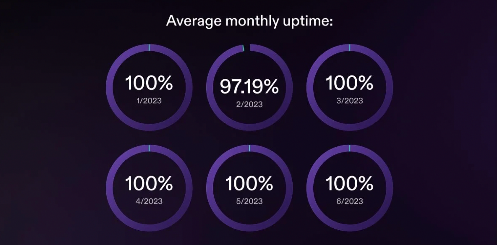 我们快照了网络的每月正常运行时间,以过去 6 个月中给定月份的正常运行时间百分比来衡量。