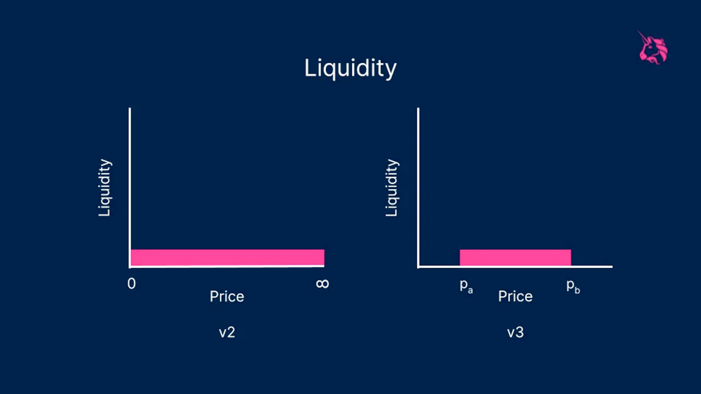 Uniswap V3 推出后,流动性提供者可以在Pool内的指定价格范围内分配流动性。与其将流动性分散在无限的价格范围内,不如选择将流动性更有效地集中在投资者预期交易量最高(以收取费用)的价格范围内。