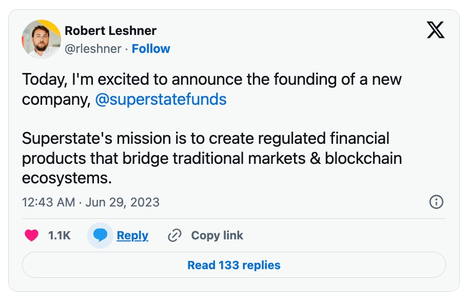图3:Robert Leshner 宣布