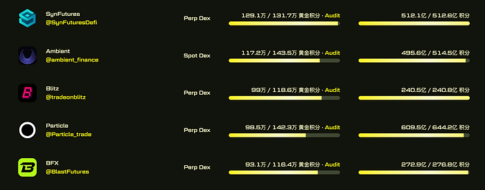 在第一轮Blast公布的Gold派发中,SynFutures 作为DEX项目,获得全生态第二多Gold激励。SynFutures早前宣布100%的Blast Gold都将奖励给用户,则仅Blast Gold一项,SynFutures第一轮派发奖励价值已经在250万至500万美金。
