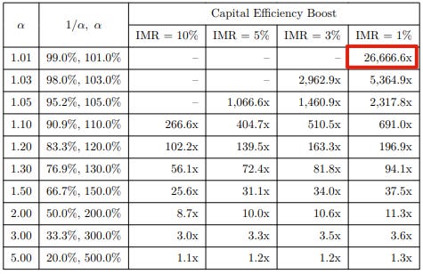 从其文档可以看到,其资金效率最高可达原来的 26,666.6 倍。