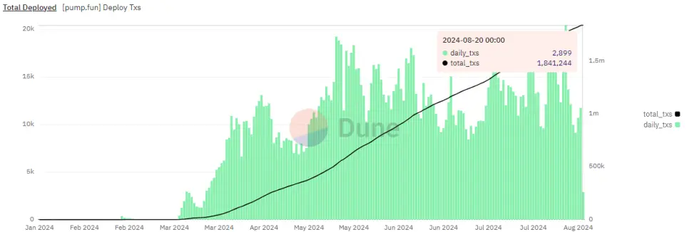Pump.fun已部署总量 数据来源:Dune