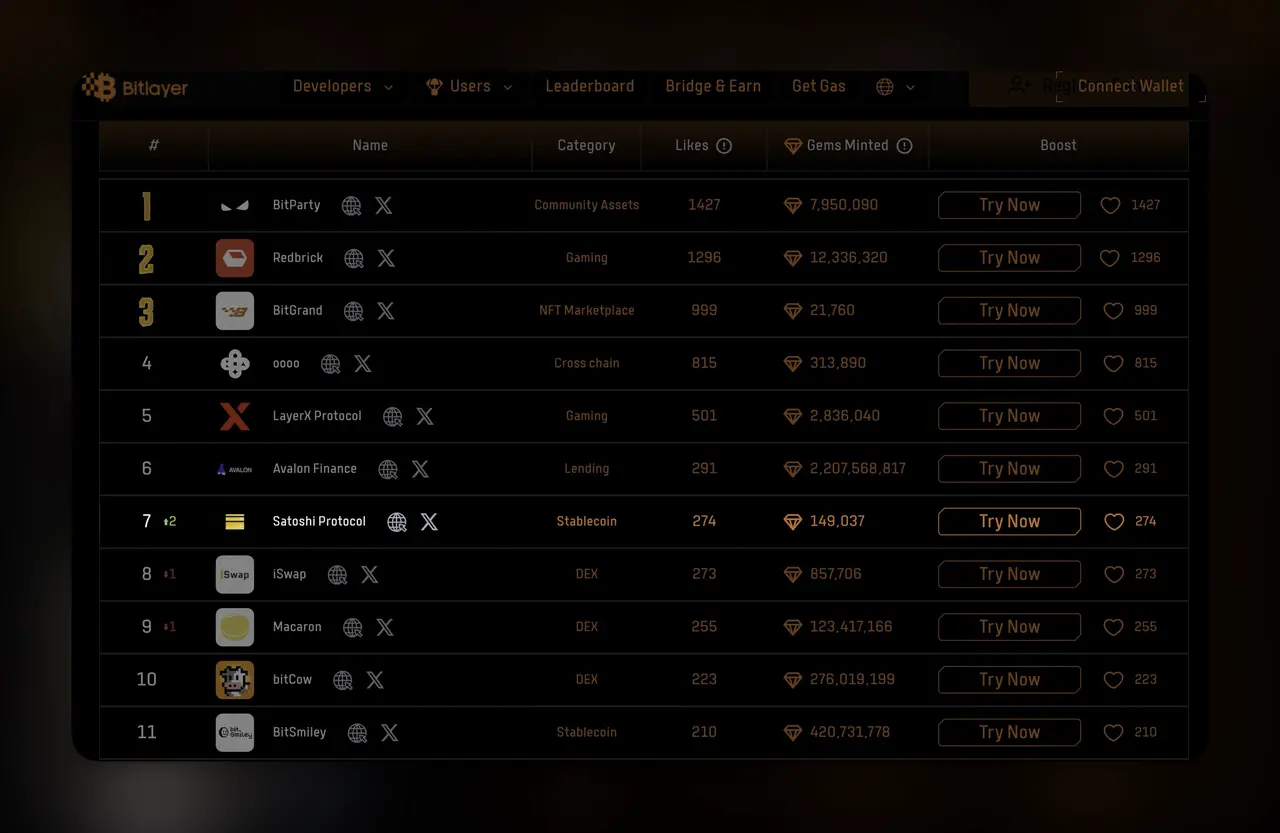 在上线 Bitlayer 主网后的 3 日内,Satoshi Protocol 已经在 Bitlayer 官网投票活动排行榜中爬升至第 7 名,这一数据展示了 Satoshi Protocol 所在 Bitlayer 生态中所受到的关注。在未来, Satoshi Protocol 还将与更多 Bitlayer 生态项目展开合作,拓展 SAT 用例,为用户提供更加灵活的抵押选择以及更多给予 SAT 的收益可能。