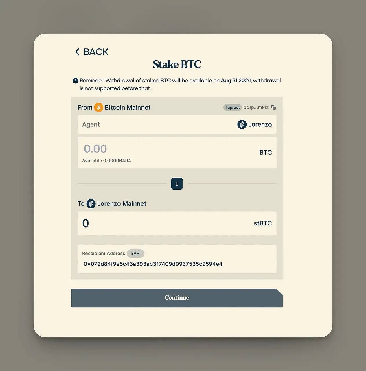 Step 3: 在 Lorenzo 主网上收到等量 stBTC