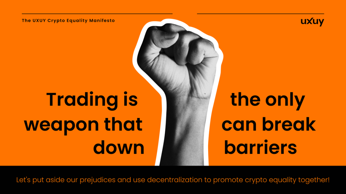 UXUY 正式基于这样的理念,发布了 《 UXUY 加密平等宣言 》 ,呼吁推动跨链交易对新兴资产的支持,在宣言中提出:交易是打破壁垒的唯一武器,只有抛开偏见,使用去中心化的手段,才能实现加密平等。