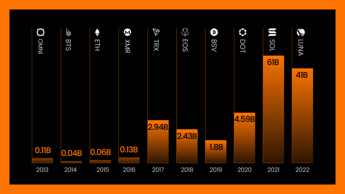 目前,规模最大的稳定币 USDT 运行在波场上,2023 年最耀眼的新资产 ORDI 运行在比特币网络上,在可以预见的未来,会有更多生态将成为新的叙事,引领下一轮创新。