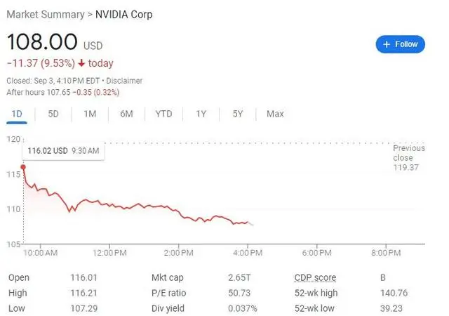 l 英伟达重挫9.5%,市值抹去2789亿美元