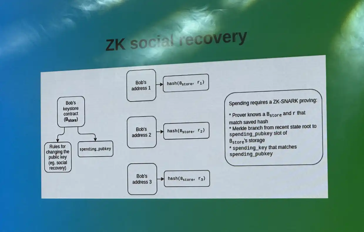 简单来说,当用户生成多个私钥分片时,可以将碎片加密并使用 zk-SNARK 证明系统来生成证明,然后将证明分配给可信的机构或朋友。 若用户私钥遗失,可请求第三方提供碎片数据证明,然后使用 zk-SNARK 来验证这些证明的准确性,进而实现了不透露私钥分片就可 social recovery 的功能。11/n